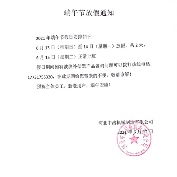 波紋伸縮節(jié)廠家端午節(jié)假放假通知-中浩機械